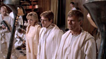 – С вашим отцом всё будет нормально. Остановите Сета. – Как? Я не умею этим пользоваться, – но Сэлмак был уверен в обратном. – У вас есть сила, вы должны воспользоваться ей! – Сэм, скрепя сердце, надела ленточное устройство и побежала за Сетом. Сэлмак с волнением смотрел ей вслед. Она догнала беглеца почти у выхода. Сет попытался отбиться своим устройством, но Сэм, сделав боевое лицо, сумела воспользоваться своим оружием и опередить его. Ударившись в стену, Сет упал наземь. Сэм подошла Этот второй по счёту визит генерала Картера в свой родной мир закончился тем, что Джейкоб, видимо, наученный опытом Джейсона и Тома Левинсонов, смиловался и вместе с дочерью приехал в Сан-Диего. Перед тем, как постучаться в дом Марка Картера, Джейкоб обнял Саманту, после чего подошёл к двери. Марк открыл дверь, и отец с сыном, наконец, обняли друг друга. Джейкоб повеселел и взял на руки внучку, выбежавшую встречать своего дедушку. Сэм улыбнулась, и Джейкоб с внучкой на руках вошёл в дом. Саманта, так же мило обнявшись с братом, последовала его примеру… | |