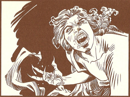 У криптозоологов найдется уйма захватывающих легенд, свидетельств от уцелевших после встречи с вендиго, и хотя они заблуждаются – так что не вздумайте путать нас с криптозоологами – но все-таки и они отмечают кое-какие особенности в поведении вендиго. Вендиго не похож на Биг Фута. Возможно, чуток на йетти, который не жрал ничего, кроме снега с 1850 года. Обычно он повыше нормального человека, но не намного, жутко тощий. Частенько, особенно в северных странах, его тело недосчитывается каких-нибудь частей, так как тварь подвержена обморожению: то пальцы на ногах потеряет, то кончики ушей или нос, то еще чего-нибудь ненужное… Иногда они покрыты свалявшейся белой шерстью, другие же описывают их как совершенно лысых. Обычно они просто-напросто преследуют свою добычу, но иногда используют иной подход, один наш осведомитель сказал, что вендиго наслаждаются охотой. Одинокий путник, оказавшийся в лесу, начинает слышать странные звуки. Он оглядывается, в поисках источника – но ничего не видит, кроме мелькания чего-то, что двигается слишком быстро, чтоб его мог засечь человеческий глаз. Спустя какое-то время мельтешение утихнет, и вендиго, возможно, рявкнет тихонечко, потому что ему нравится активная еда. И когда путник начинает свой последний в жизни забег – вендиго атакует.