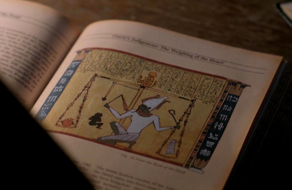 БОББИ: Они значат – Бог Осирис. Деспотичный типчик. Он тебе и судья, и присяжные, и палач. Согласно легендам, он видит, что у человека на сердце. И если чувство вины окажется тяжелее перышка правды – бац, тебе крышка.