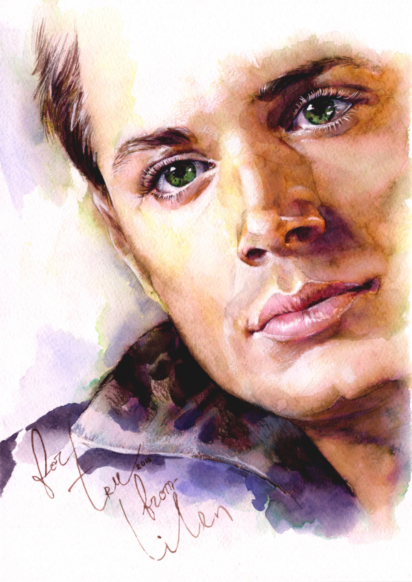 И когда я собиралась на нашу первую встречу вне сети, я даже не раздумывала над тем, что подарить дорогому другу на память. Я взяла в руки еще чистый лист бумаги, но уже видела на нем Дженсена Эклза. Рисовался он очень легко и нам кажется, что получился свежим и живым. Тру решила поделиться подарком, и теперь мы покажем его и вам.