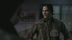 Сэм так и сидит на кровати, не в силах подняться и тяжело дышит от пережитого. Дин осторожно подходит к распростертому телу девушки, Чак прячется за его спиной, выглядывая из-за плеча Винчестера.