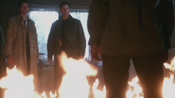 Оставив за собой последнее слово, Кастиэль стремительно выходит. Винчестер идет за ним, слегка улыбаясь: «Моя школа!». Он оборачивается к Рафаэлю.